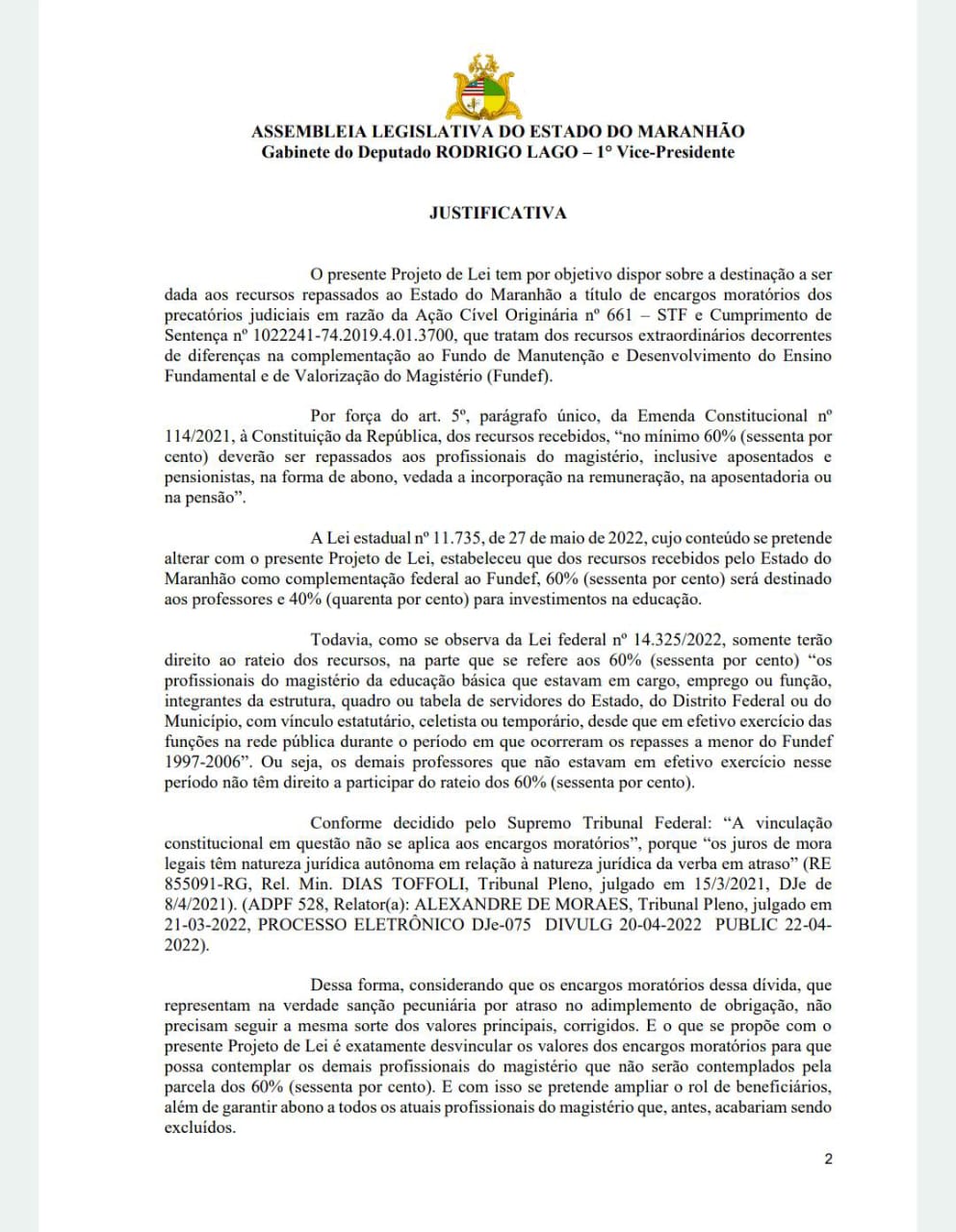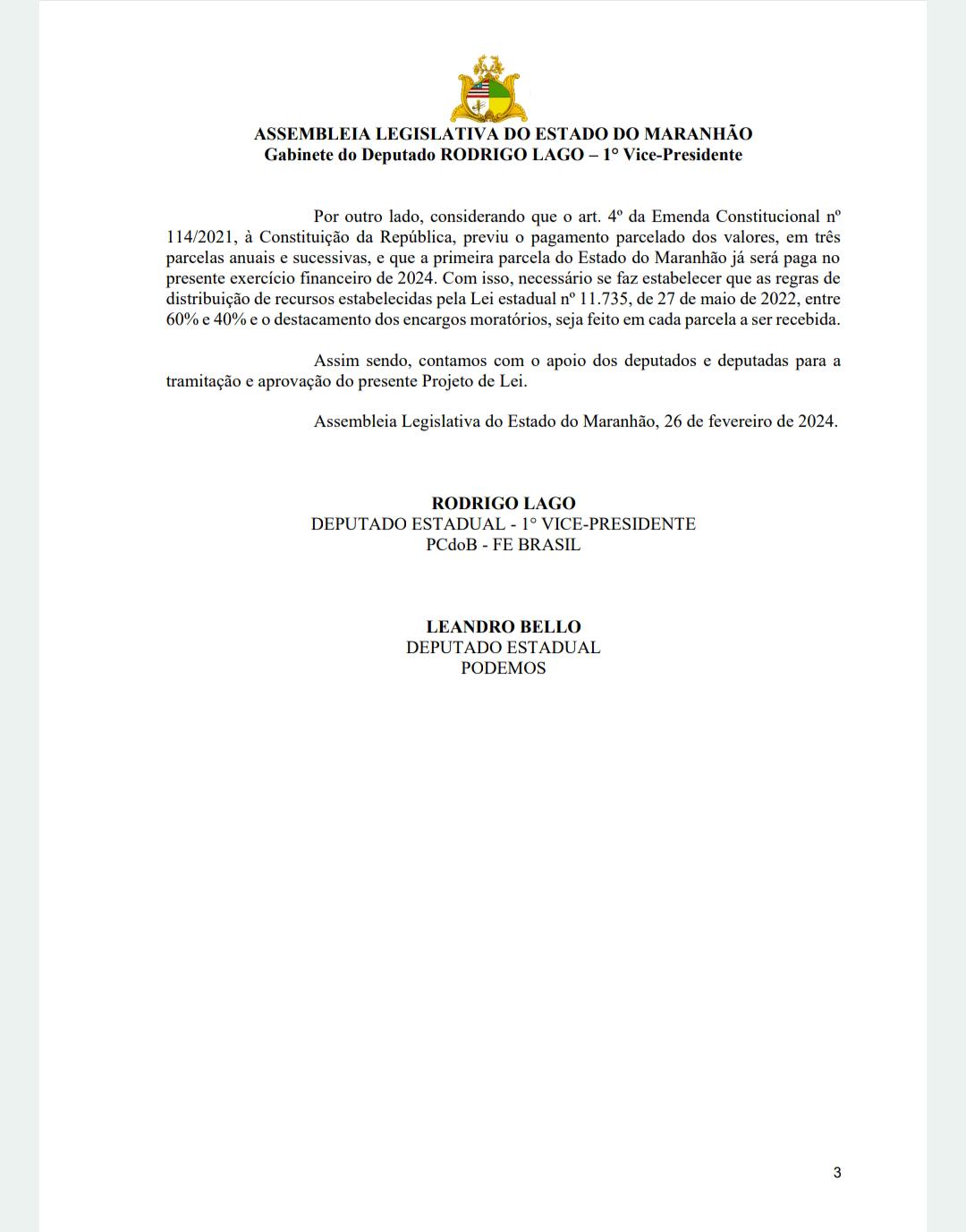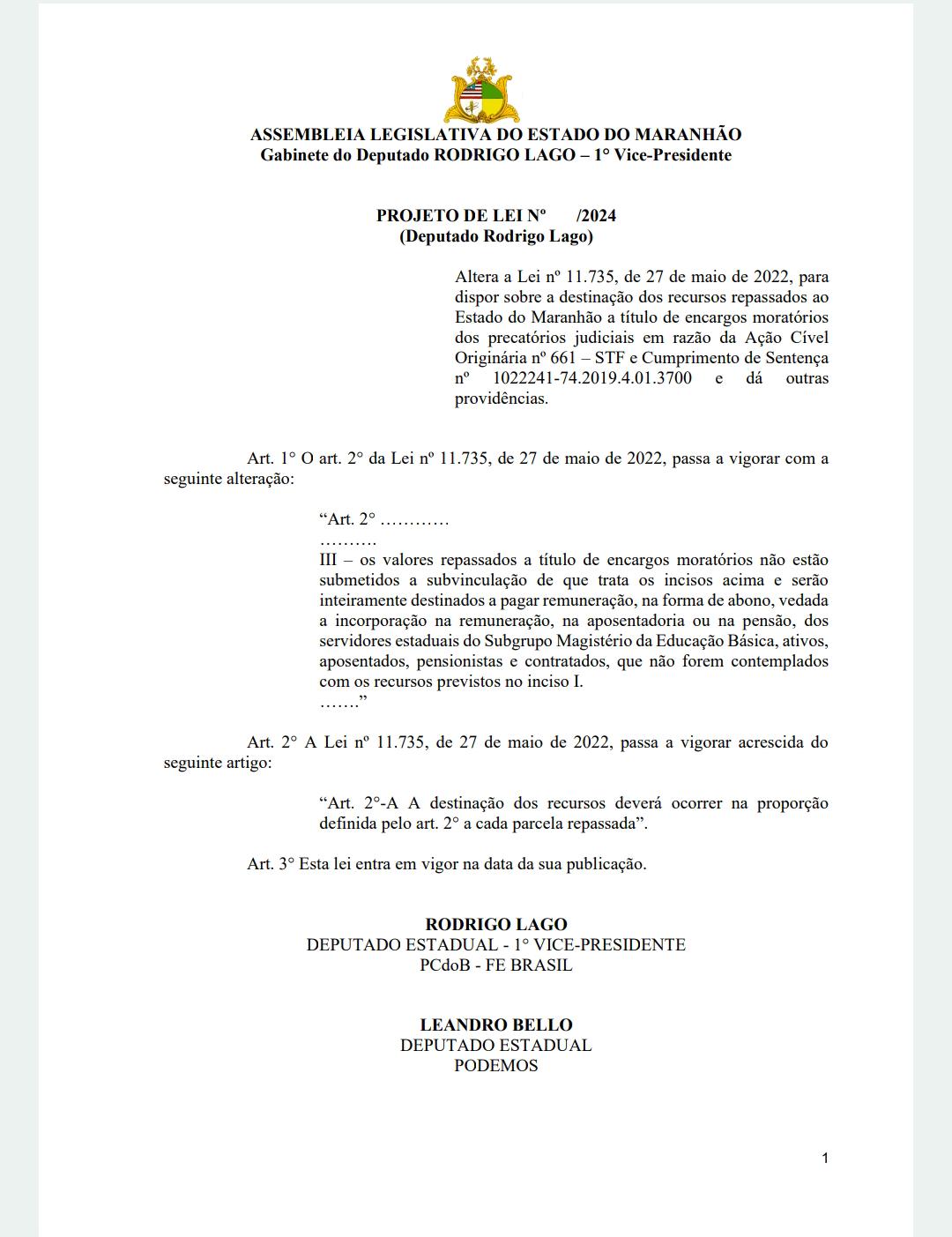 O cenário político maranhense assiste a um espetáculo de cinema sem precedentes protagonizado pelo deputado estadual Rodrigo Lago. Enquanto utiliza suas redes sociais para enfatizar uma suposta preocupação com o magistério, o parlamentar atuou fortemente nos bastidores da Assembleia Legislativa em um projeto que representa uma traição brutal aos professores beneficiados do precatório do FUNDEF da rede Estadual. No dia 26 de fevereiro de 2024, Lago protocolou um Projeto de Lei (proposta para alteração da Lei Estadual nº 11.735/2022) que visava, na prática, confiscar direitos legítimos da categoria.