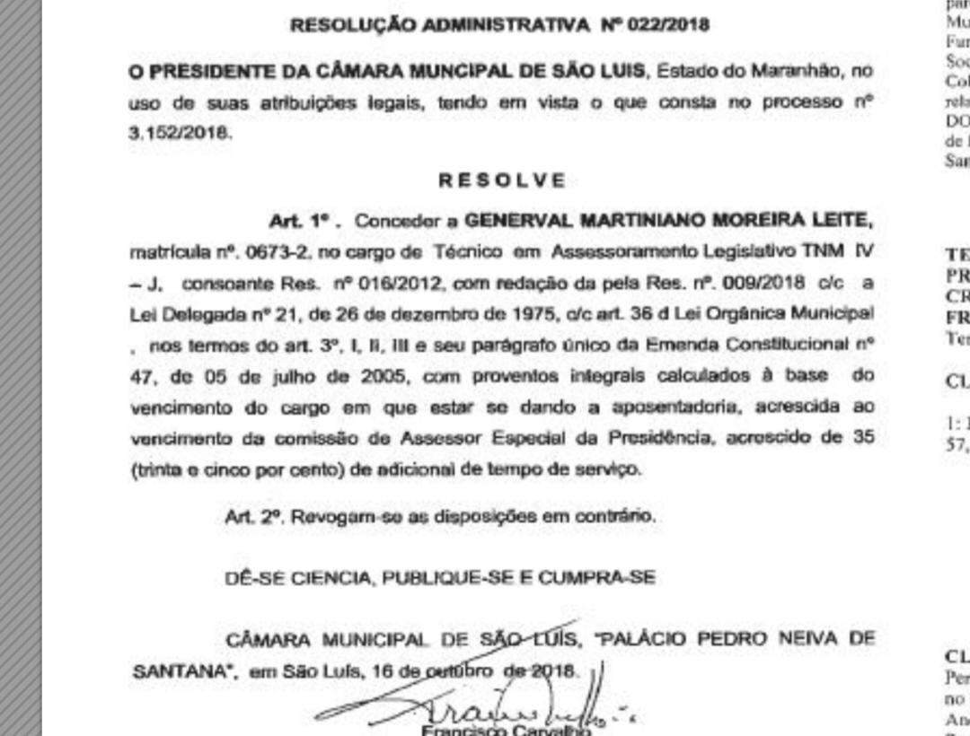 Merece ainda ser aclarado, que todas as informações sobre aposentadorias concedidas pela Câmara Municipal, por força de um Termo de Ajustamento de Conduta firmado entre o Ministério Público, Município de São Luís e Poder Legislativo em 2018, incluindo os documentos que comprovam o ingresso junto ao serviço público, foram encaminhados ao Instituto de Previdência e Assistência do Município – IPAM e, posteriormente, ao Tribunal de Contas do Estado, que fará a análise legais do benefício concedido.