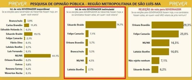 A corrida pelo governo do Maranhão já começa a ganhar forma, e o vice-governador Felipe Camarão (PT) surge como um dos principais protagonistas. De acordo com levantamento do Instituto Prever realizado na Grande Ilha, Camarão pontuou com 7,1% das intenções de voto, sem sequer ter lançado oficialmente sua pré-candidatura, superando nomes como Orleans Brandão (5,7%) e Lahesio Bonfim (2,7%).