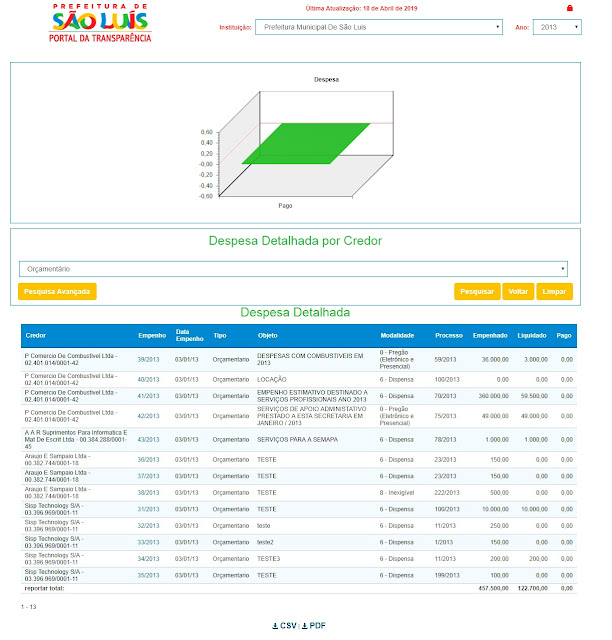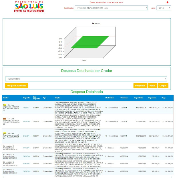 SÃO LUÍS-MA: Empenhos de despesas disponíveis ao público no Portal Transparência da Prefeitura de São Luís (http://transparencia.saoluis.ma.gov.br/) poderão ser provas suficientes para embasar o julgamento da Ação Popular de nº 0812198-19.2019.8.10.0001, impetrada pelos advogados Pedro Michel da Silva Serejo e Daniele Leticia Mendes Ferreira, questionando o Projeto de Lei nº 55/2019, aprovado pela Câmara Municipal no dia 13 do mês passado, concedendo autorização retroativa para um Termo de Reconhecimento de Dívida (TRD) firmado pela gestão do prefeito Edivaldo Júnior, em maio de 2015 em favor da empresa SLEA – São Luís Engenharia Ambiental S/A, responsável pela coleta de lixo na capital.