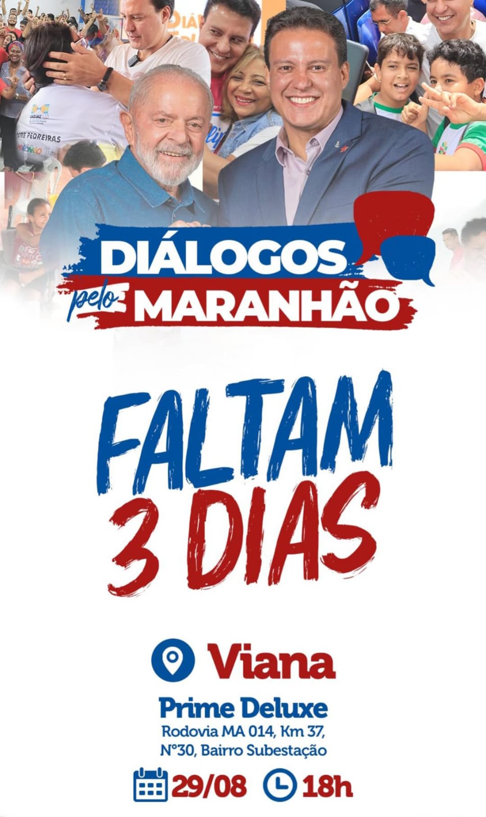 O evento, que será realizado na Baixada Maranhense, foi anunciado com entusiasmo nas redes sociais e em vídeo divulgado nesta semana. “Chegou a vez da minha Baixada Maranhense! Tenho um convite especial para fazer a toda região. Na próxima sexta-feira, dia 29, faremos o Diálogos pelo Maranhão em Viana. Um momento de construção coletiva do Maranhão que queremos! Avante!”, declarou o organizador.