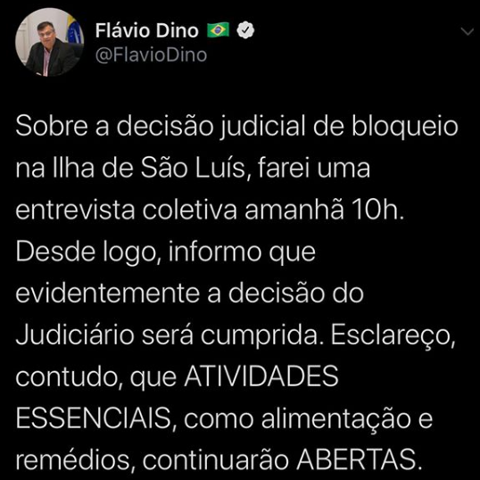 De acordo com a decisão, ficarão suspensas todas as atividades não essenciais à manutenção da vida e da saúde, com exceção de serviços de alimentação, farmácias, portos e indústrias que trabalham em turnos de 24 horas. Também está proibida a entrada e saída de veículos da Ilha de São Luís, por dez dias, com exceção para caminhões, ambulâncias, veículos transportando pessoas para atendimento de saúde e atividades de segurança.