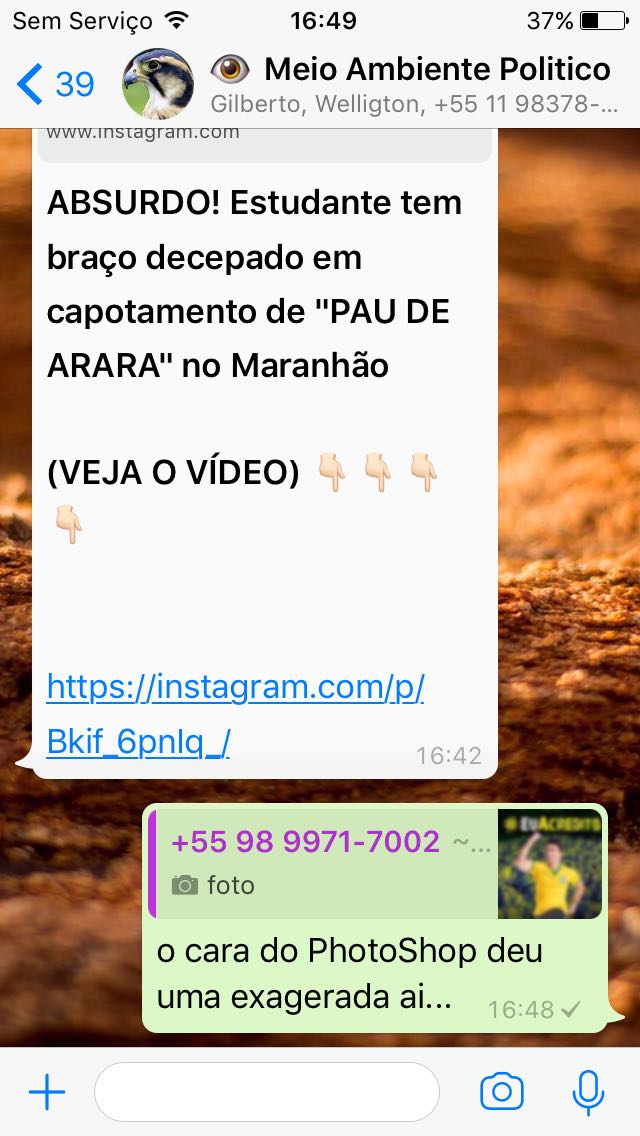 Em pleno jogo da seleção brasileira contra a Sérvia o ex-superintendente do PROCON Duarte Júnior tem compartilhado em vários grupos de whatsapp uma foto sua vestido com a camisa canarinho, até ai tudo bem, já que ele quer se fazer lembrado pois está na corrida por uma vaga na assembleia legislativa do estado.
