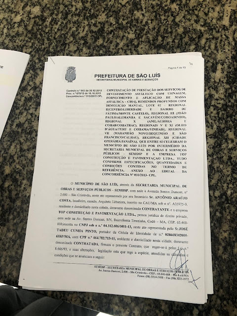 – Em dezembro de 2013 e maio de 2014, a prefeitura de São Luís/MA, publicou edital de licitação, para prestação de serviço, através da Secretaria de Obras, tendo como vencedora do processo licitatório a empresa Top Construção e Pavimentação Ltda., subcontratou parte das obras, bem como subcontratou a totalidade da obra, sem que o poder executivo local se manifestasse ou anuísse, na chamada operação conhecida popularmente como “CHUVERINHO”, – consta na peça.
