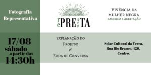 No dia 17 (sábado), será realizada uma roda de conversa no Solar Cultural da Terra Maria Firmina, localizado na Rua Rio Branco. Nesta oportunidade será explanado às modelos, parceiros e ao público presente o projeto, acompanhado por uma discussão acerca das principais temáticas e desafios enfrentados pela mulher negra nos mais diversos ambientes da sociedade. Entre as presenças confirmadas no evento está a artista Brena Maria (@brenamar_), contribuinte da roda e modelo no projeto.