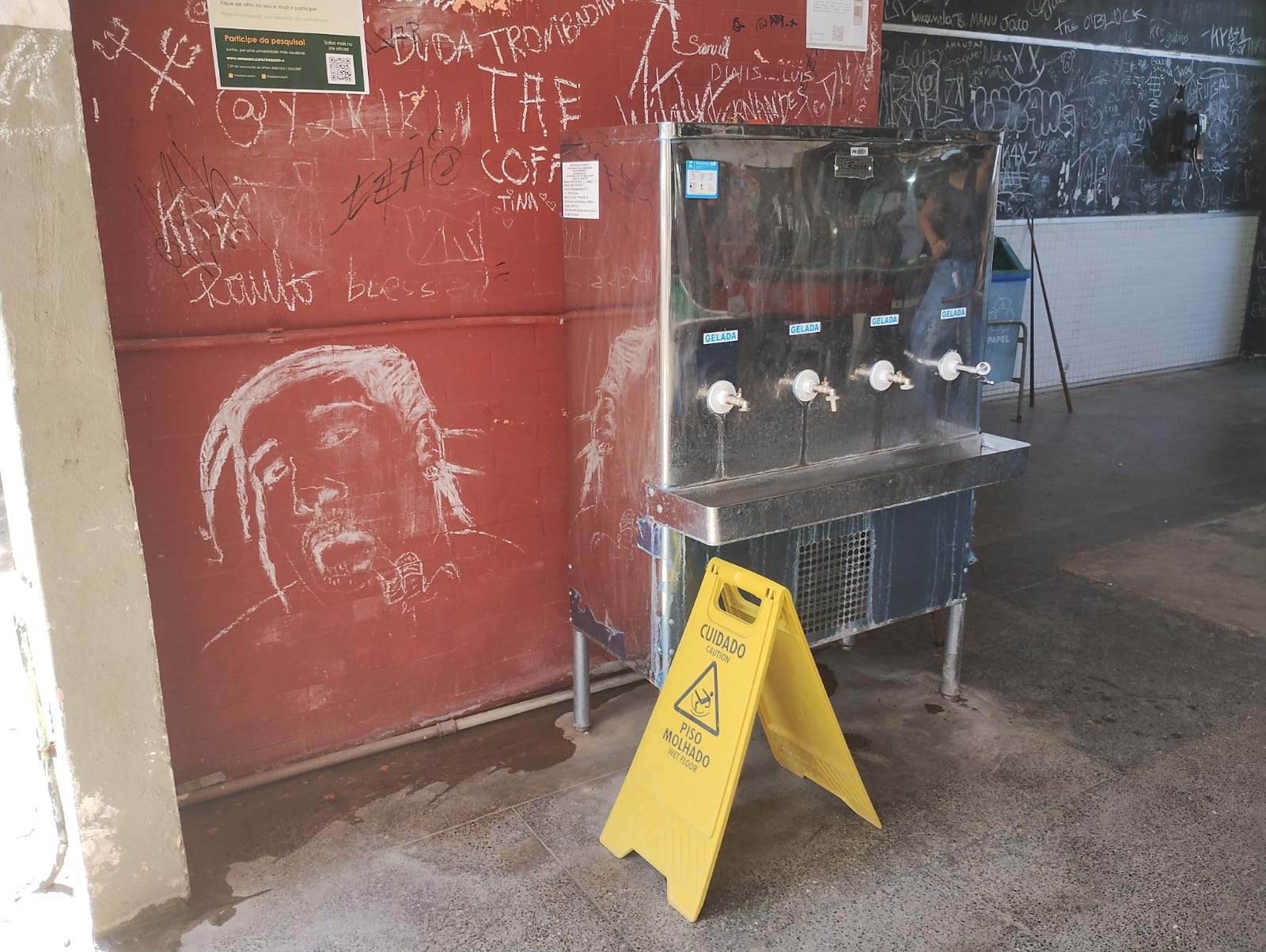 – Na área de vivência, outro bebedouro que não funciona há mais de um ano — enquanto esse espaço também abriga milhares de estudantes diariamente.
