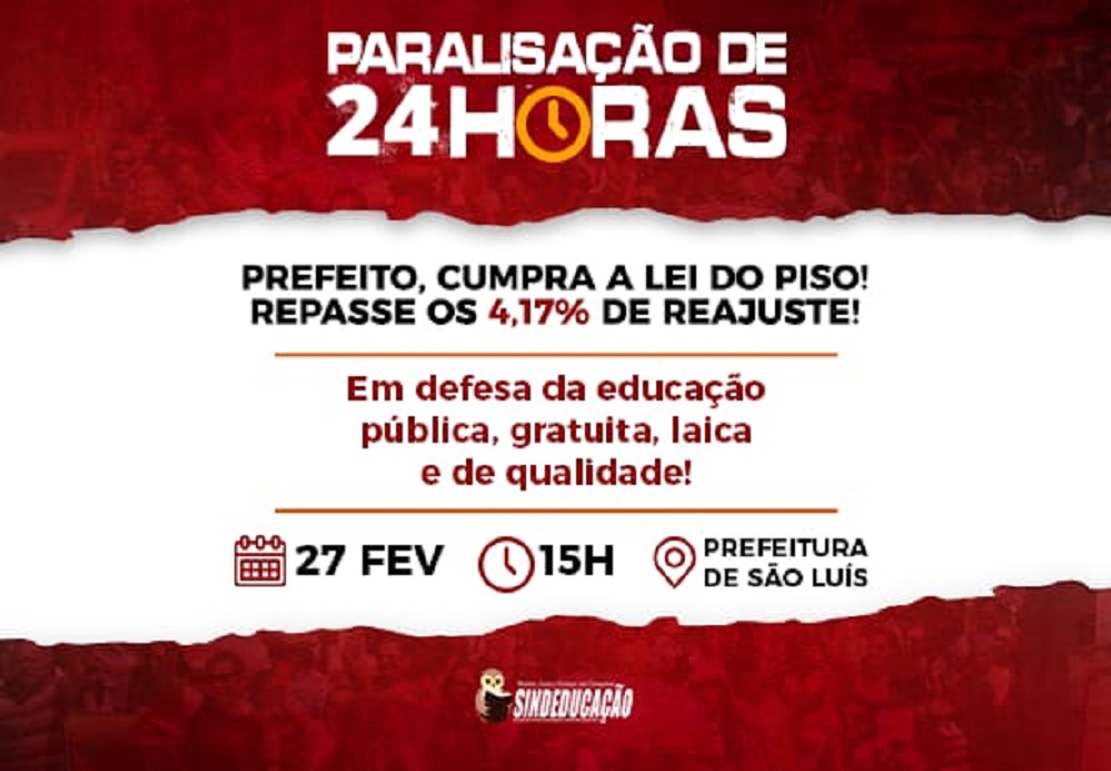 Uma manifestação da categoria acontece nesta quarta-feira, dia 27 de fevereiro, a partir das 15h, na frente da Prefeitura de São Luís.