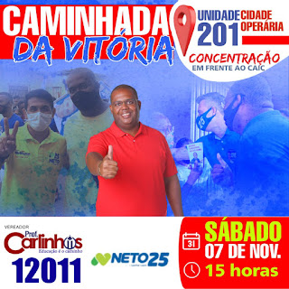 O candidato a vereador Prof. Carlinhos (PDT) mais uma vez mostrou a força da sua militância na cidade operária em carreta junto com o candidato a prefeito Neto Evangelista (DEM) pelas ruas do bairro e pela cidade olímpica com diversos carros e motos plotados, além de inúmeros apoiadores com sua bandeira. Na semana passada, o candidato também mostrou sua liderança na cidade operária em uma caminhada realizada no bairro, que arrasou multidão fazendo uma grande onda azul no bairro.