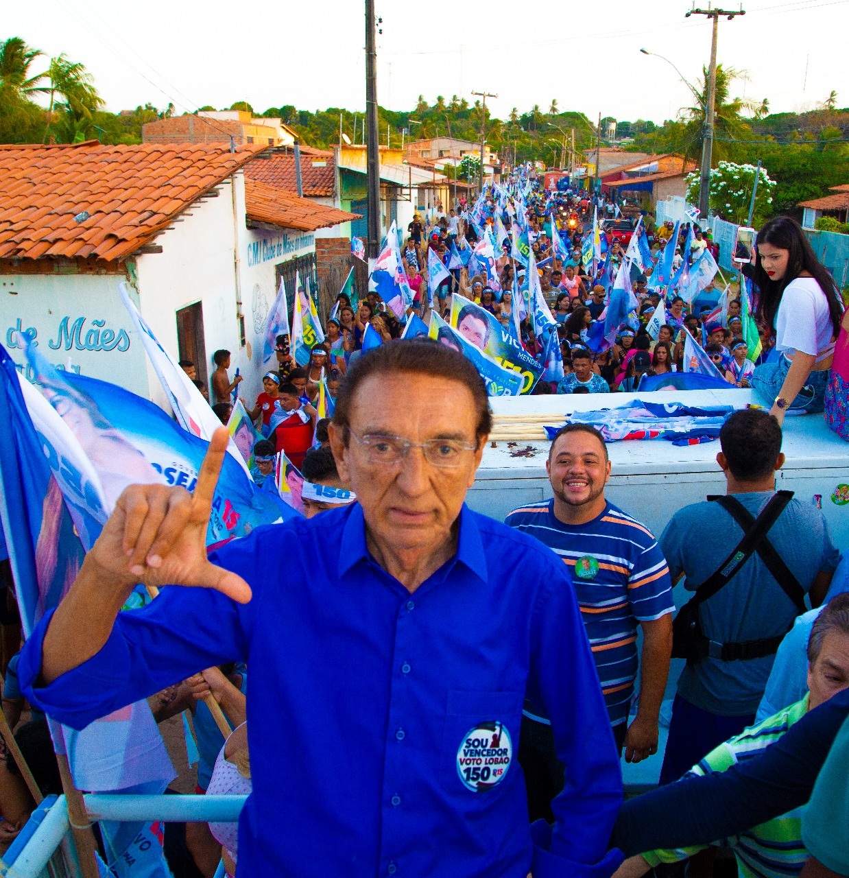 O senador Edison Lobão participou, no último domingo (23), de passeatas, carreatas e comícios em São Luís, recebendo o carinho e o apoio de toda a população. Pela manhã, a carreata com mais de 500 carros começou no Parque Vitória, ao lado da neta Tatiana Lobão, Trinchão, Pastor Lázaro, Aldair Júnior e Camila Sarney percorreram a Vila Luizão e o Turu.