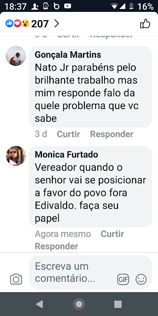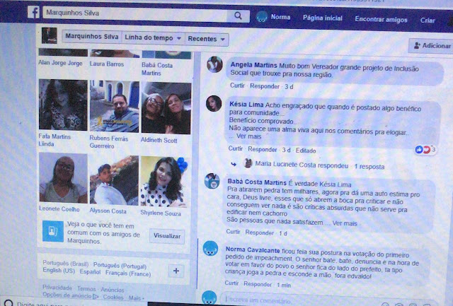 Veja abaixo um pouco do constrangimento dos vereadores em suas páginas pessoais nas redes sociais.