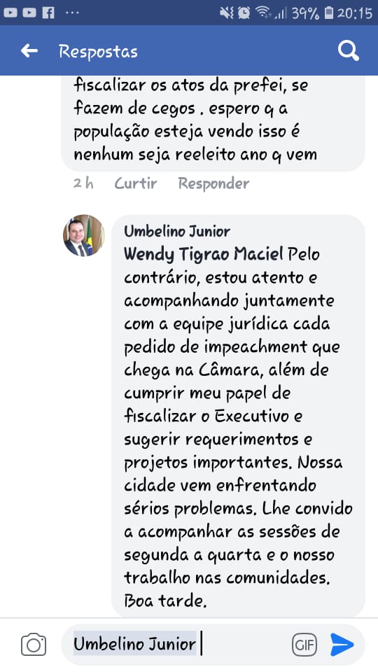 Nas redes sociais, a situação é pior ainda. Neste espaço, os vereadores evitam falar do assunto por conta do alto desgaste. Os que ousam responder às criticas, usam argumentos poucos convincentes como é o caso do vereador Umbelino Júnior (Cidadania).